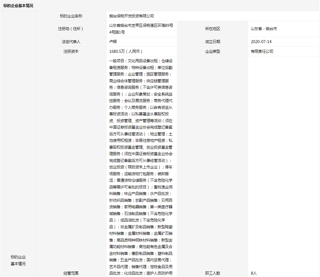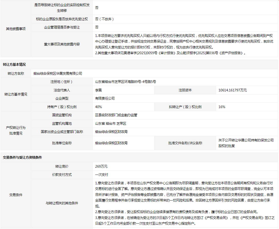 • 轉(zhuǎn)讓方:煙臺綜合保稅區(qū)華晟發(fā)展有限公司
