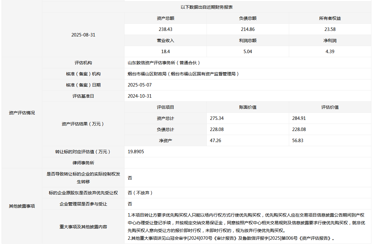 轉(zhuǎn)讓方: 煙臺市福山區(qū)財政局(煙臺市福山區(qū)國有資產(chǎn)監(jiān)督管理局)