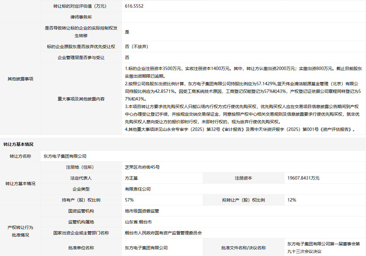 • 轉(zhuǎn)讓方:東方電子集團(tuán)有限公司