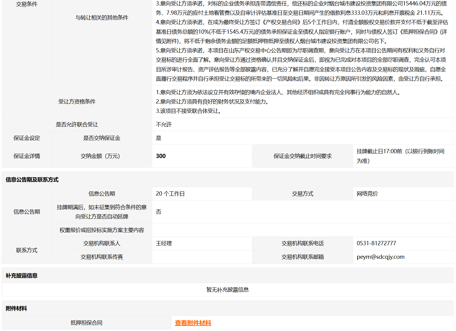 煙臺(tái)市景新置業(yè)有限公司50%國(guó)有股權(quán)
