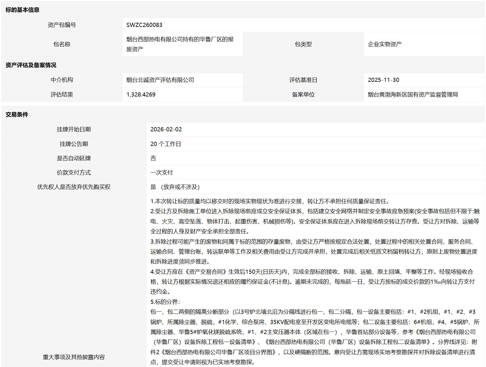 • 轉(zhuǎn)讓方: 煙臺(tái)西部熱電有限公司