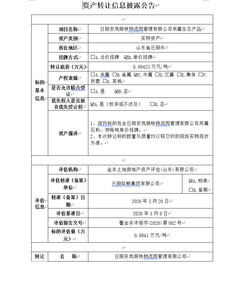 日照安嵐鋼鐵物流園管理有限公司所屬生態(tài)產(chǎn)品