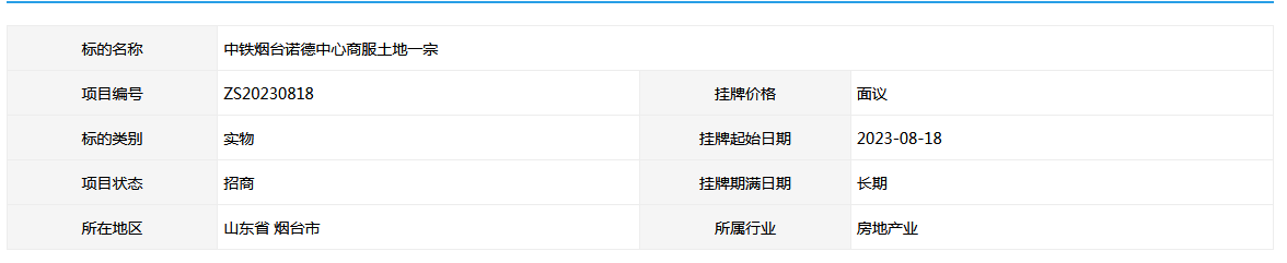 中鐵煙臺諾德中心商服土地一宗