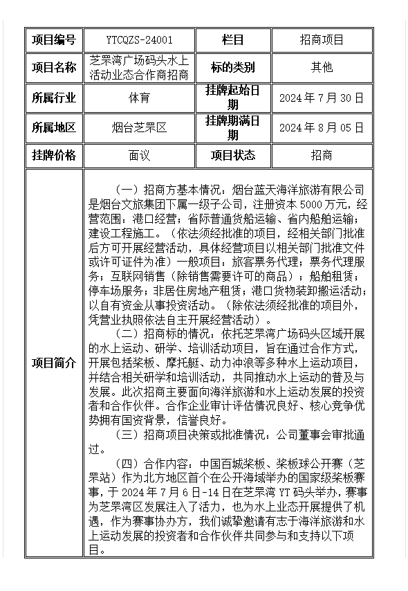 芝罘灣廣場碼頭水上活動(dòng)業(yè)態(tài)合作商招商