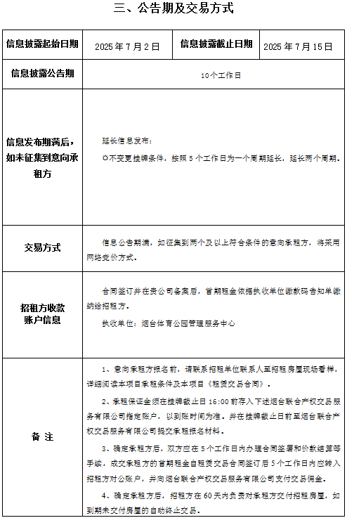掛牌起止日期:2025年7月2日至2025年7月29日